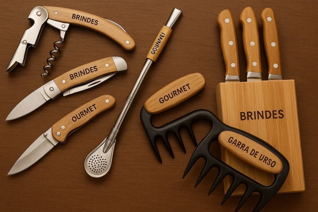 - Tábuas de corte e aventais personalizados: Combinam estilo e praticidade, e reforçam a associação entre marca e experiência.